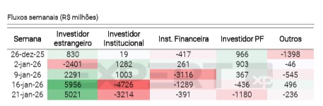 Os dados de fluxo deixam isso claro. O investidor estrangeiro voltou com força para a B3 neste começo de ano(derrubando o valor do dólar), enquanto o investidor pessoa física traumatizado por política, crises e previsões apocalípticas segue reduzindo exposição. É o velho jogo: quem olha ciclo e preço entra; quem olha manchete hesita.