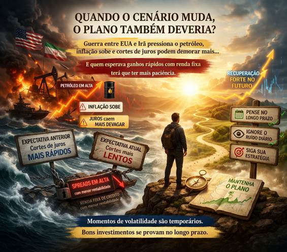 Eventos como guerras, choques de commodities ou mudanças de expectativa fazem parte do mercado. Eles alteram o ritmo. Mas raramente mudam o destino de longo prazo de uma boa estratégia.